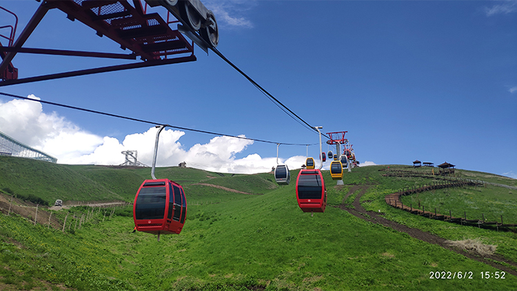 固定抱索器吊廂索道具有方便、高性?xún)r(jià)比等特點(diǎn)。吊箱采用封閉式,常用配置選擇2人吊箱、4人吊廂。其工作原理是一條閉合的運(yùn)載索套在索道兩端的驅(qū)動(dòng)輪及迂回輪上,線路中間設(shè)有支架,支架上裝有托索輪或壓索輪組,隨地形變化將運(yùn)載索托起或壓下,按一定間距將吊廂用抱索器固結(jié)在運(yùn)載鋼索上,動(dòng)力驅(qū)動(dòng)輪帶動(dòng)載索,迂回輪實(shí)現(xiàn)線路往返來(lái)實(shí)現(xiàn)運(yùn)送乘客的目的。2人廂和4人廂索道是景區(qū)觀光交通的性?xún)r(jià)比高的理想產(chǎn)品,索道的建設(shè)和維護(hù)成本相對(duì)較低。適合旅游開(kāi)發(fā)投資前期。固定抱索器的2廂和4人廂索道線路速度和站內(nèi)速度相對(duì)一致,線速度可站內(nèi)控制變頻調(diào)速。根據(jù)廂配置,2人廂線路速度可達(dá)1米/秒,4人廂的線路速度可達(dá)0.8米/秒,乘客乘坐須站內(nèi)工作人員手動(dòng)開(kāi)關(guān)門(mén)廂門(mén)。2人廂和4人廂的選擇,可根據(jù)不同的線路和高差來(lái)配置廂的運(yùn)量和個(gè)數(shù),以滿(mǎn)足客戶(hù)運(yùn)營(yíng)者和使用者的需求。